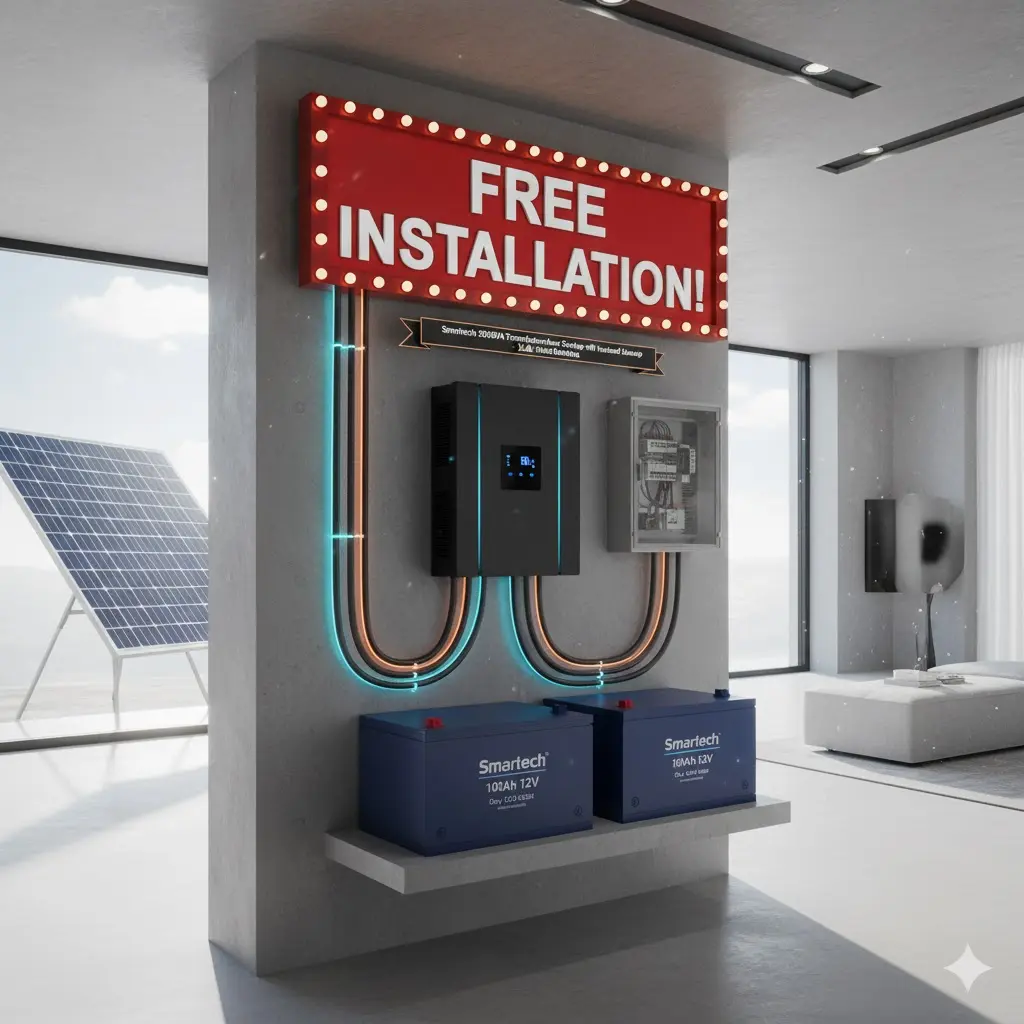 Yes, the professional installation labor is 100% FREE with this package! We cover the cost of our technical expertise. The customer covers the logistics, which means the cost associated with transporting the entire equipment package (inverter, panels, batteries, etc.) and the Smartech installation team to your specific location.